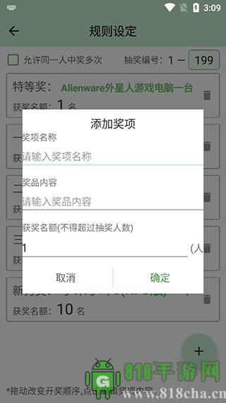 2、然后可以设置获奖的奖励和抽奖编号;