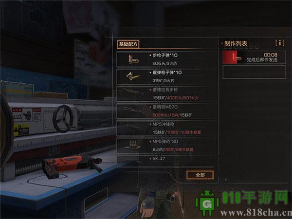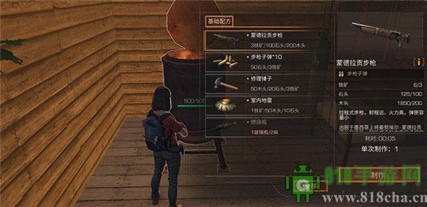 制作步枪等高级点高级道具同样需要先按照配方准备好材料才行,并且需要配合相应打造台才行,如下以制作步枪为例为大伙做个简单展示: