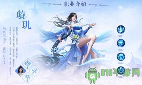 璇玑清丽脱俗,翩若惊鸿;以杖为器,聚气成冰,凝冰化形;技能特征远程群体高伤,寒泉突涌,置对手于鼓掌之间,冰龙九天,决胜千里之外