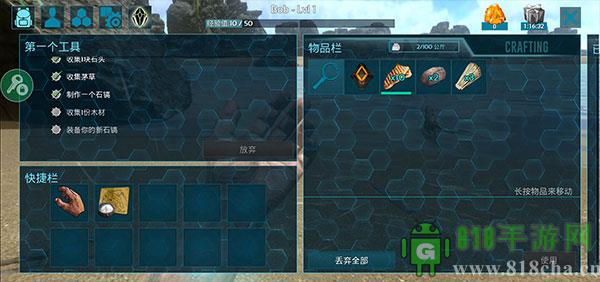 3、选择之后就可以开始你的冒险之旅了,刚开始玩家们需要按着右上方的任务进行操作,你需要收集石头、木材等,制作各种武器装备去探索这个世界;