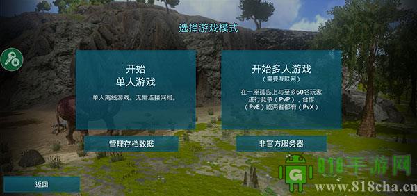 2、选择玩法模式,提供单人以及多人联机玩法;