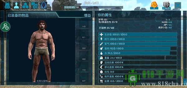 5、可以查看你的属性,如生命值、耐力、食物、水量等等,你应该时刻注意着自己的属性,不然可能会导致游戏的失败;