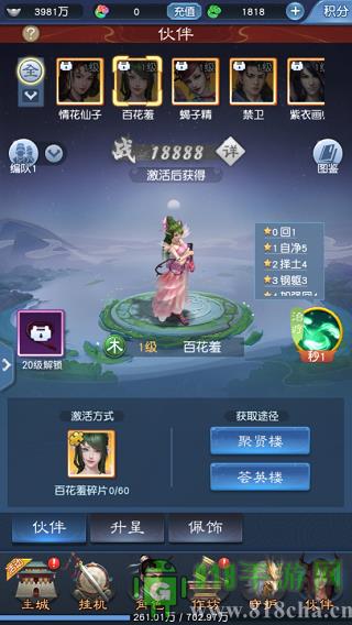 地宫挑战赠送的百花羞,具有高额的法术单体伤害并能造成伤害2.5倍的治疗。在中期以低战力挑战称谓挑战时,会有一些具有强力单体伤害的BOSS,这个时候有个治疗位会对过关有很大的帮助,所以,对于平民玩家和小氪玩家来说,培养一个百花羞作为3号位是非常必要的。