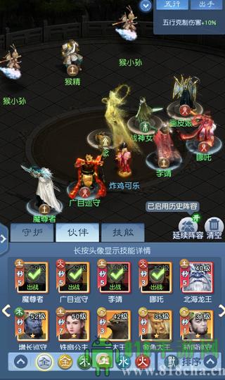 不知道大家发现没,在出战阵容的①号位置的伙伴最先出手,秒5的魔尊者虽然是物理攻击,但是被他击中的目标会处于虚弱状态(物理、法防下降),这样后手的单位对虚弱状态下的目标伤害有很大幅度提升,其次秒5的魔尊者还可以清理掉一些低血量的小怪,后手单位的火力更为集中。
