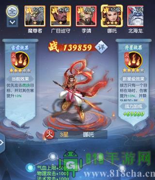 ③号位的伙伴该如何选择呢?①、②两个位置的伙伴相继给目标挂上了减抗、燃烧buff、这时可以考虑主打进攻了,不要钱的李靖放在③号的位置,在攻击燃烧状态下的目标时,有伤害加成。