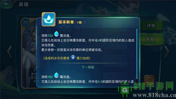 4、艾薇儿,控场法师,能控能输出,低战力挑战高战力野怪必备,就是魔法消耗高(魔法跟金币是一个概念,长期消耗资源),“冰墙”可以切割战场,“暴风雪”能冰冻敌人,下克上必备的英雄,属于战略型英雄;(现版主已对艾薇儿相关技能进行加强,详情可见往期更新公告。点我传送)